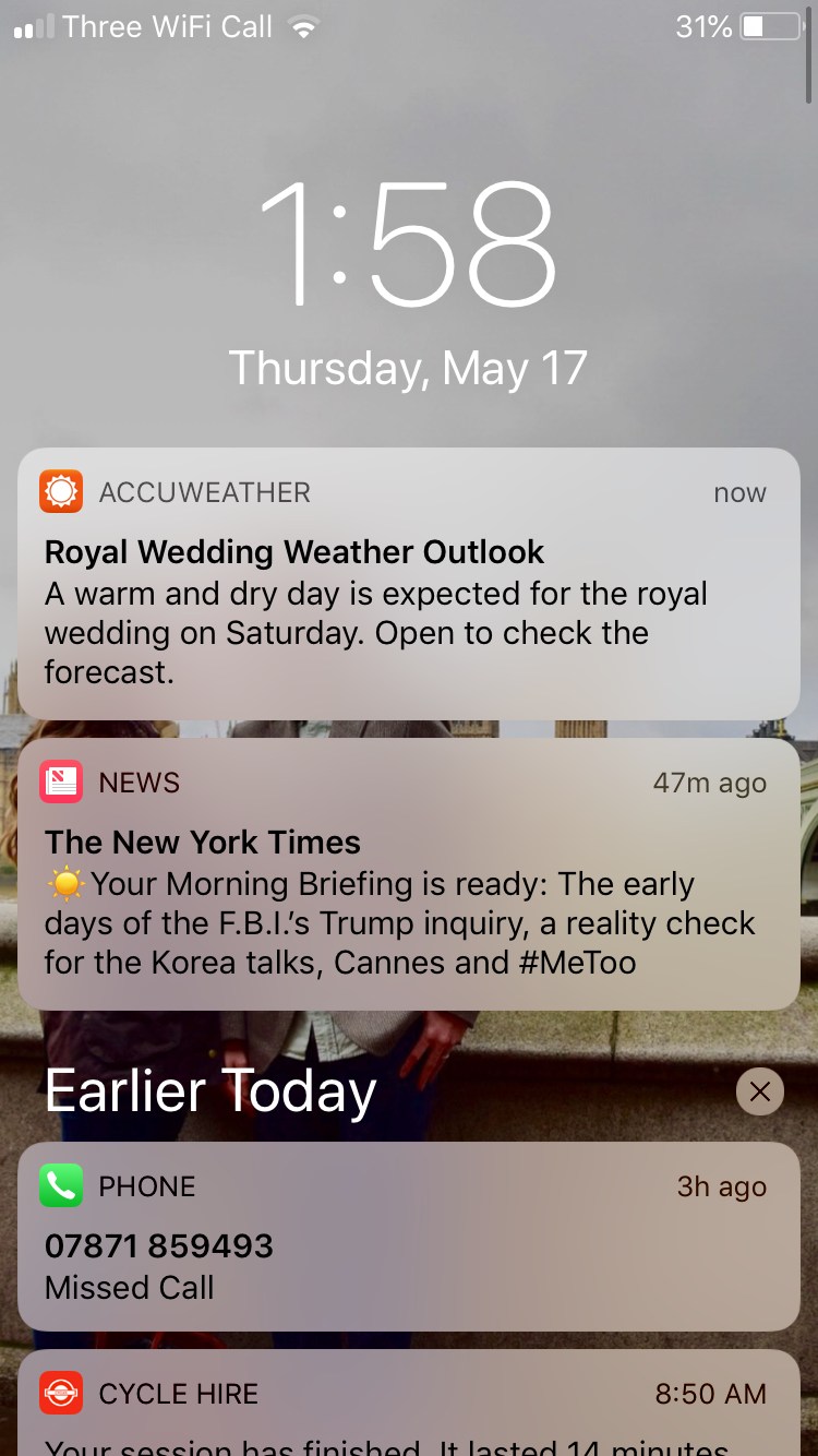 Thousands of people lined the procession path in Windsor to see Harry and Meghan ride by via horse drawn carriage and many more watched on big screens outdoors. So Accuweather’s handy location targeted notification provided value by delivering the wedding day weather report in advance and ensuring Brits didn’t need to pack their umbrellas.