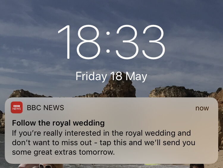 Nearly all major news outlets covered the Royal Wedding by sending notifications, but the buzz also left more than a few people questioning whether it was all a bit too much. To prevent user annoyance, brands can use data analytics to measure engagement and better inform their messaging strategy. Every story they read, notification they click, or button they tap provides insight into a user’s interests and affinities. If someone has read 2 or more articles about the Royal Family, chances are high they’ll appreciate or at least won’t mind hearing more.