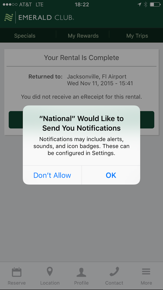 Lingerie retailer Third Love highlights the personalized, relevant and exclusive benefits of opting in to push in their pre-permission message. National Car Rental has a clear value proposition. They show and tell how to opt in to notifications.