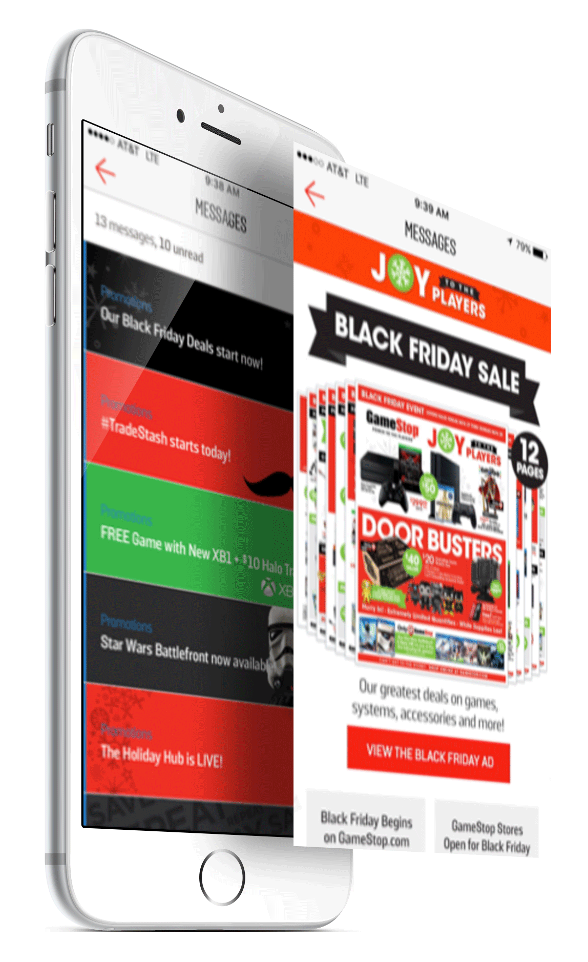 GameStop deep linked notifications to a festively themed message center.