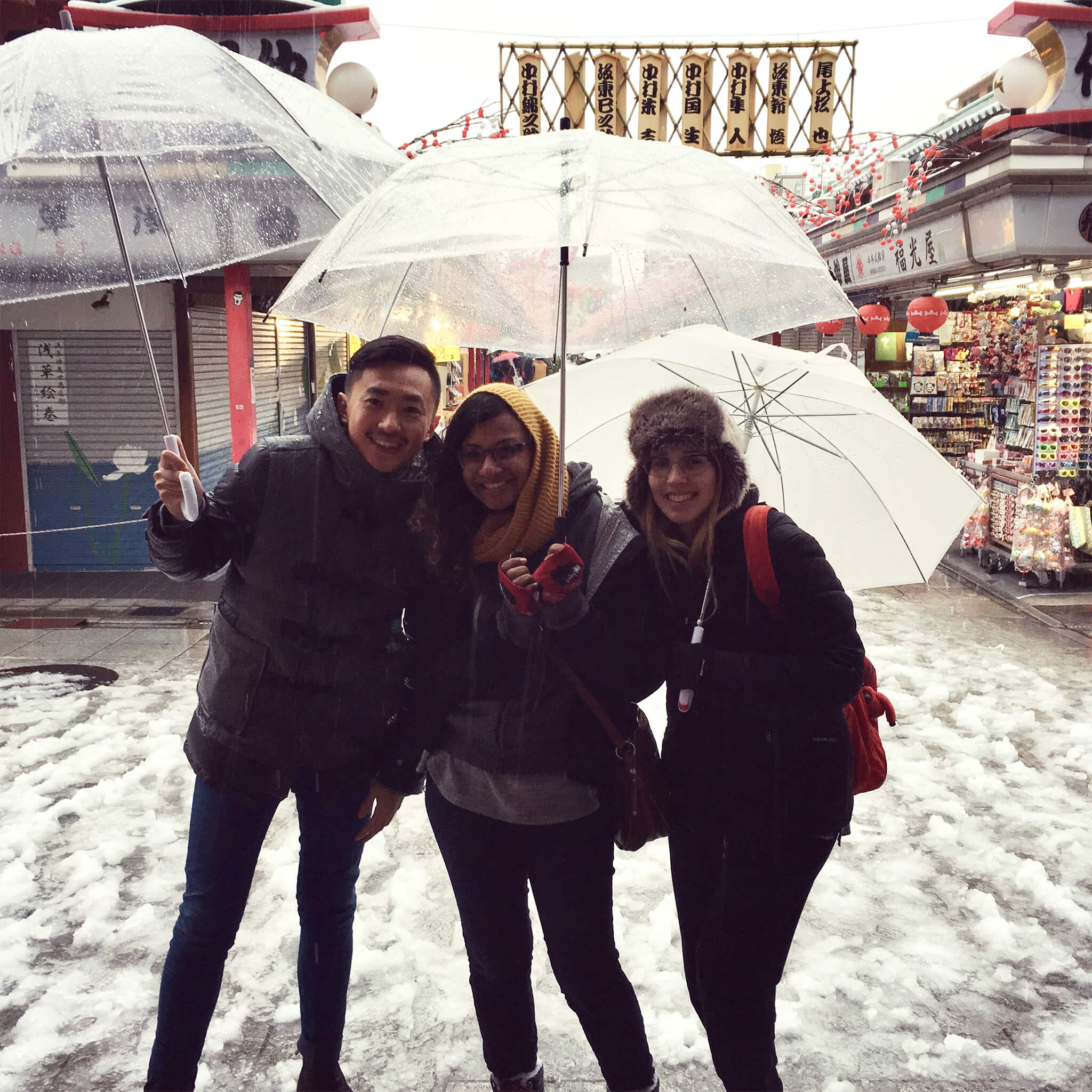 A snowy and rainy day in Tokyo spent with new friends from the hostel.
