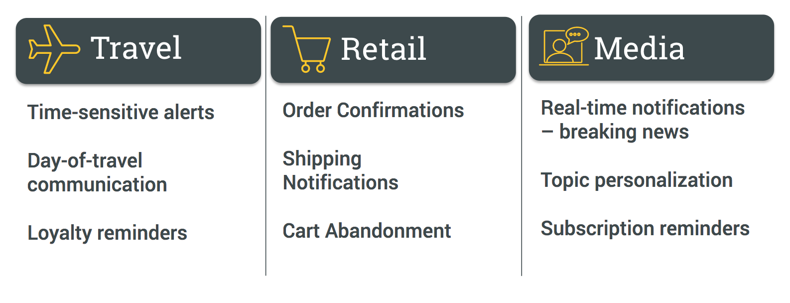 For media, nothing is more important than speed and scale and getting breaking news to the user when they want and need it on the channel or channels that make the most sense. And, of course, media companies often have subscription-based audiences. Getting a customer-centric messaging strategy in place helps engage new users and turn them into subscribers — as well as keep current subscribers engaged and loyal.