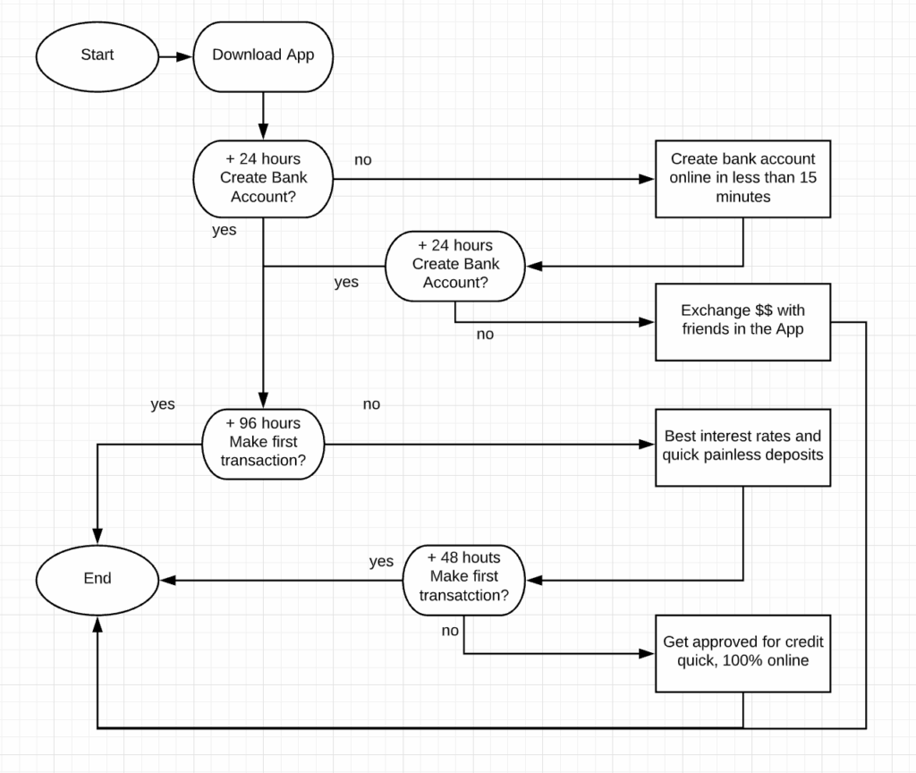 We observed this workflow, and others like this, and saw an opportunity to make building, deploying and tracking messaging across milestones a whole lot easier. We developed a “branching” like system where marketing teams can quickly map the lifecycle as interconnecting journeys and view them together in a map.