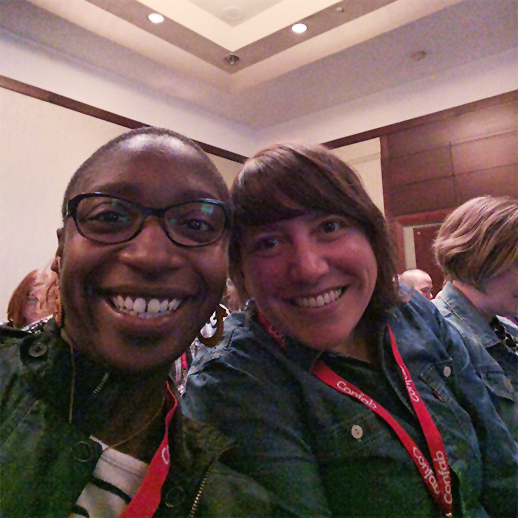 Urban Airship senior product designer Andrea Burton with copywriter Amber James at Confab Central 2016.