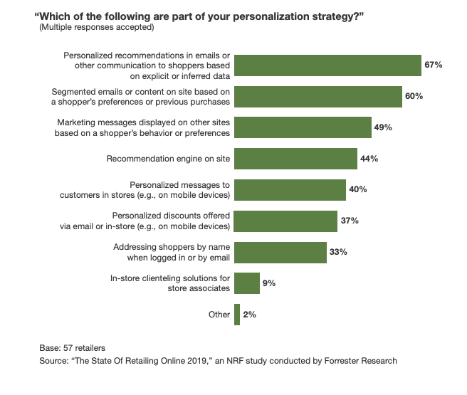 According to Forrester, “very few retailers are able to personalize content in other ways, such as on an app used in a store or by leveraging customer-specific clienteling, which is often high-touch and difficult to scale even in luxury environments.”