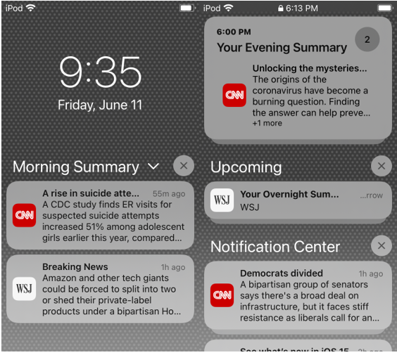 On tapping the scheduled overview, users will expand their Notification Summary within the Notification Center, where messages will be ordered by priority based on relevancy and the user’s app habits and settings. Personal “communication” notifications like those from the Messages app won’t be included in summaries.
