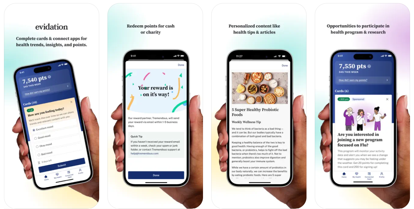 Brands forge stronger bonds with users by integrating their mission and values into the app design. A brilliant approach is through creative experimentation. For example, Evidation, engages a community of advisors for beta testing before introducing design changes to all users. This process demonstrates their commitment to trust and transparency and aids in continually upgrading app experiences.