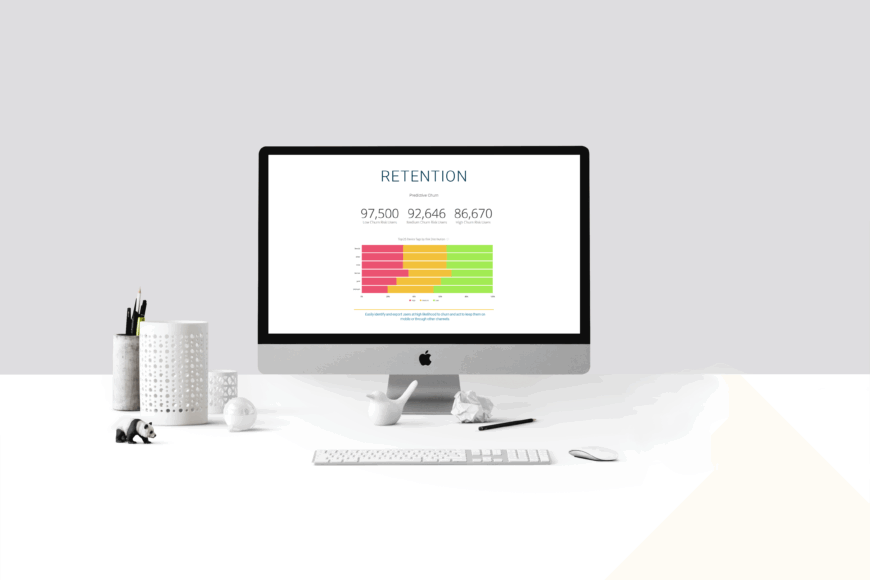 Identify users likely to churn and take action before they lapse to keep them. Churn prediction is a proprietary machine learning algorithm that assigns a risk profile to each user. The machine learning model is trained to detect the most relevant risk factors for a churn outcome, and assigns either a high, medium, or low churn risk score. View this score by segment (tag) to look at specific user populations and build messaging campaigns to increase user engagement.