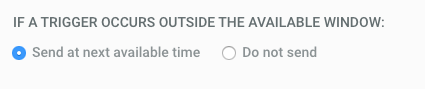 If the message trigger occurs outside one of the windows, by default you’d send it at the next available window. But you could also choose to discard the message if it’s no longer relevant: