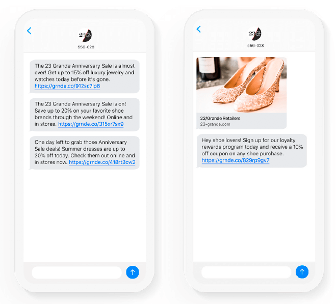 Knowing which customers are engaging with your text messages and which messages and products are most compelling to them is key for optimizing your SMS campaigns. You want to make sure that every one of your text messages has value to the customer, and an easy way to know what works is with our intelligent link features. Use branded links (with a shortened link with a custom domain) and unique link tracking to see what is working at the user-level and then use click retargeting and segmentation to personalize each message based on past engagement, ultimately creating more contextual customer journeys.