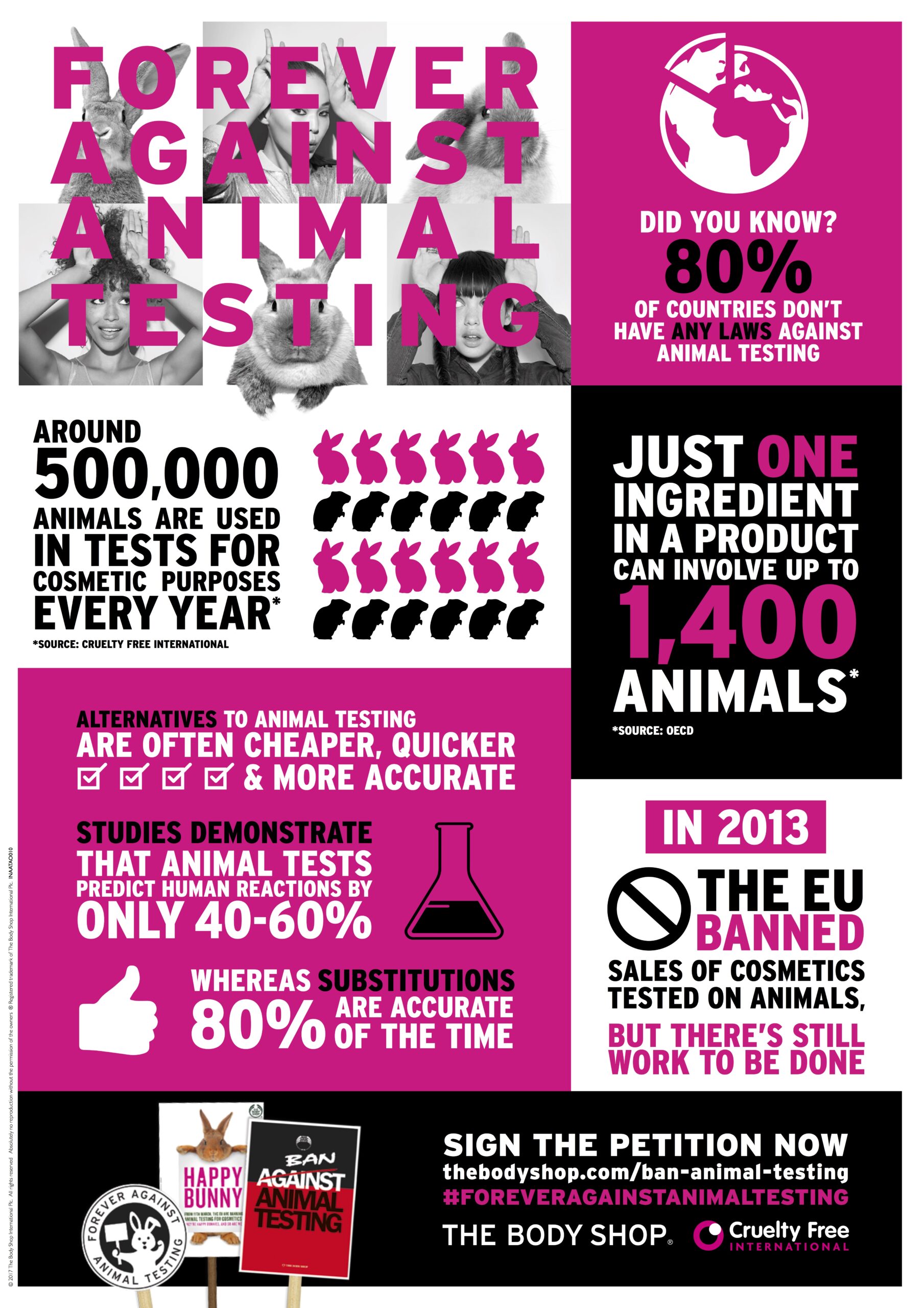 The Body Shop’s  Forever Against Animal Testing campaign was launched in June alongside Cruelty Free International. The goal is to collect 8 million signatures on a petition calling for a global ban on cosmetic animal testing. The signatures will then be brought to the UN general assembly in 2018.