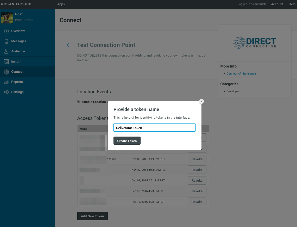 Configuring a Bot account in Slack and setting up an Urban Airship Connect token was easy.