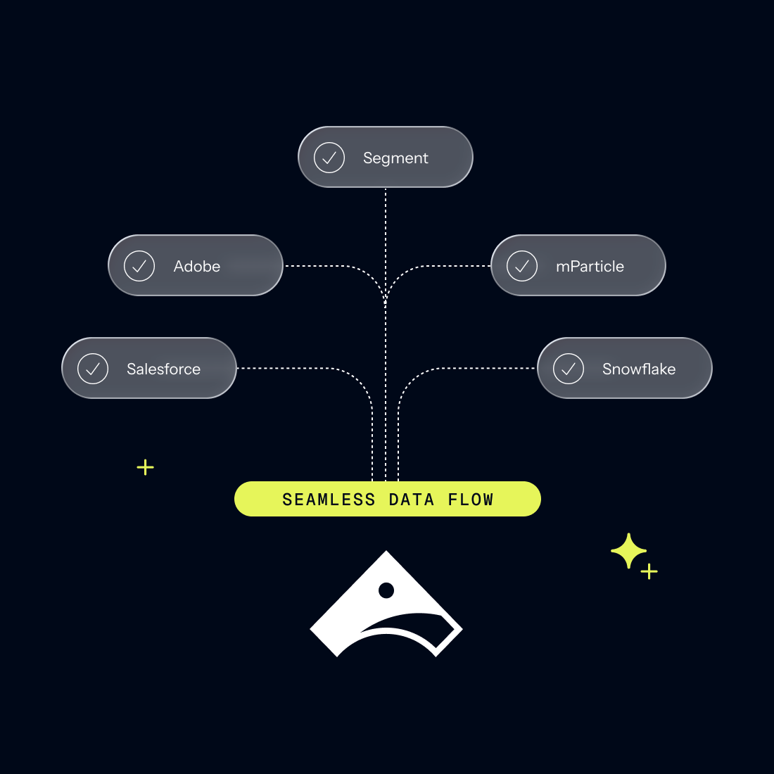 We play nice with everyone. From Salesforce and Adobe to Mixpanel and mParticle, activate your experience strategy using the platforms you already trust.