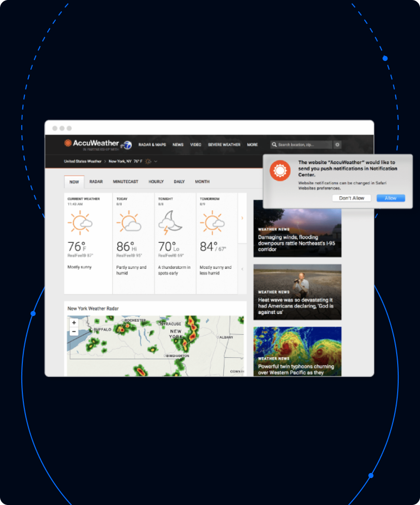 AccuWeather delivers national news and curated content via Airship Web Notifications to boost site traffic and generate more ad revenue.