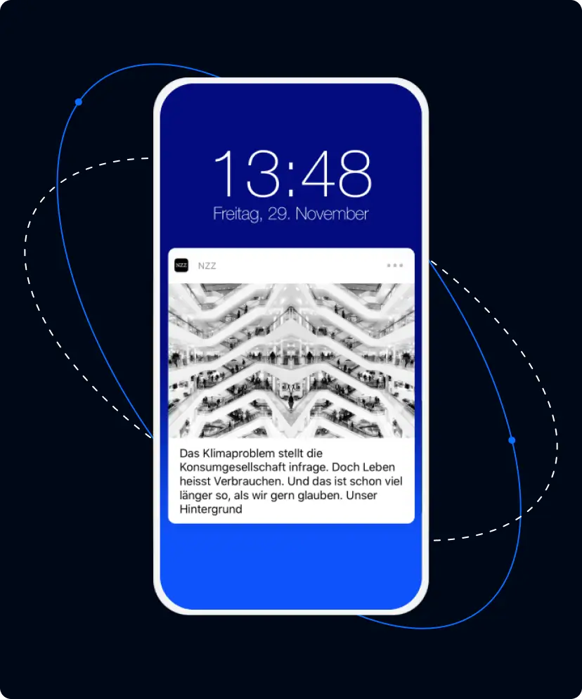 NZZ boosts click-throughs by providing a quality app experience using out-of-the-box features, including rich media, deep linking, and time-of-day delivery preferences.