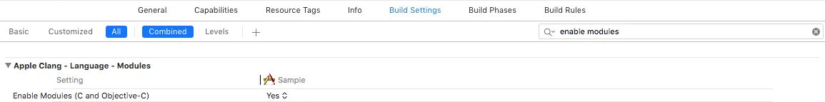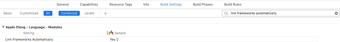 Enable Modulesshould be set toYesLink Frameworks Automaticallyshould be set toYes