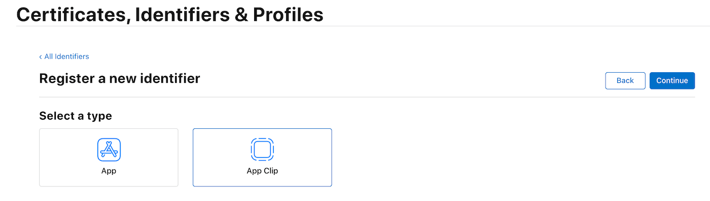 - Select App Clips as the identifier type.