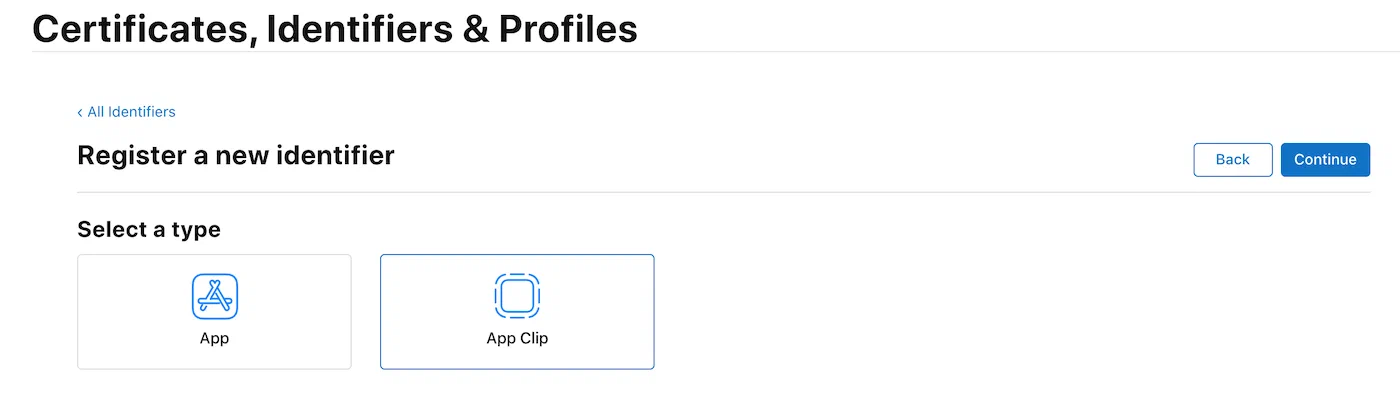 - Select App Clips as the identifier type.