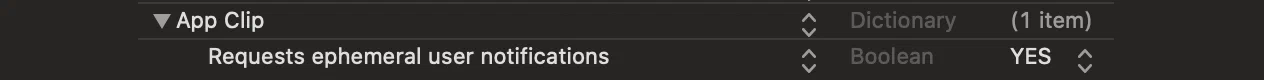 By default, App Clips can receive notifications for 8 hours after installation. To enable ephemeral notifications, add the following to your App Clip’s Info.plist: