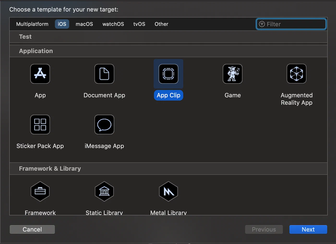 - Select App Clip in the Application section.