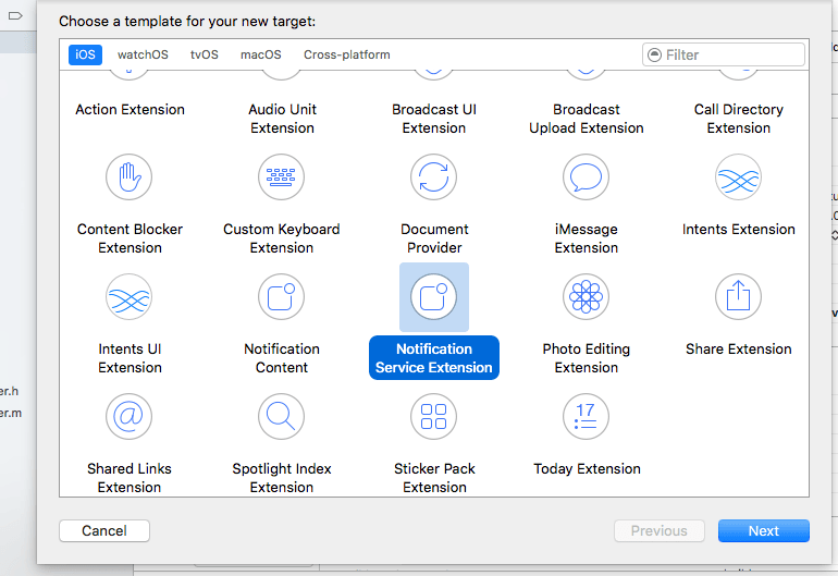 AirshipNotificationServiceExtension.frameworkto your service extension target following Carthage’s instructions. - Add to your
