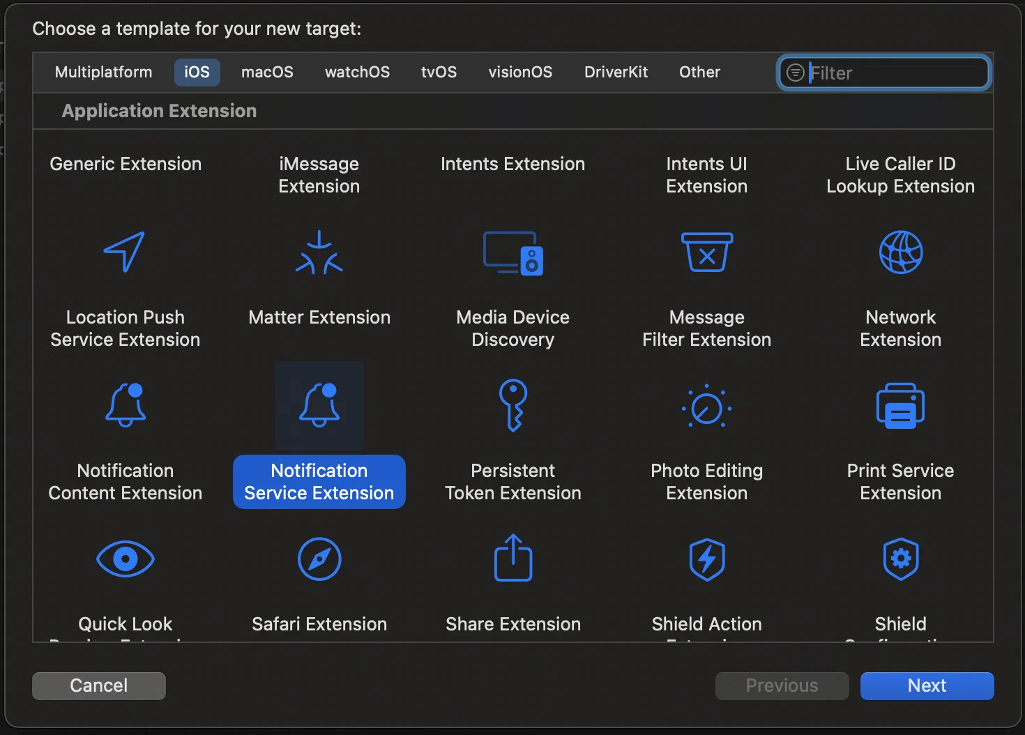 Create a Notification Service Extension Target