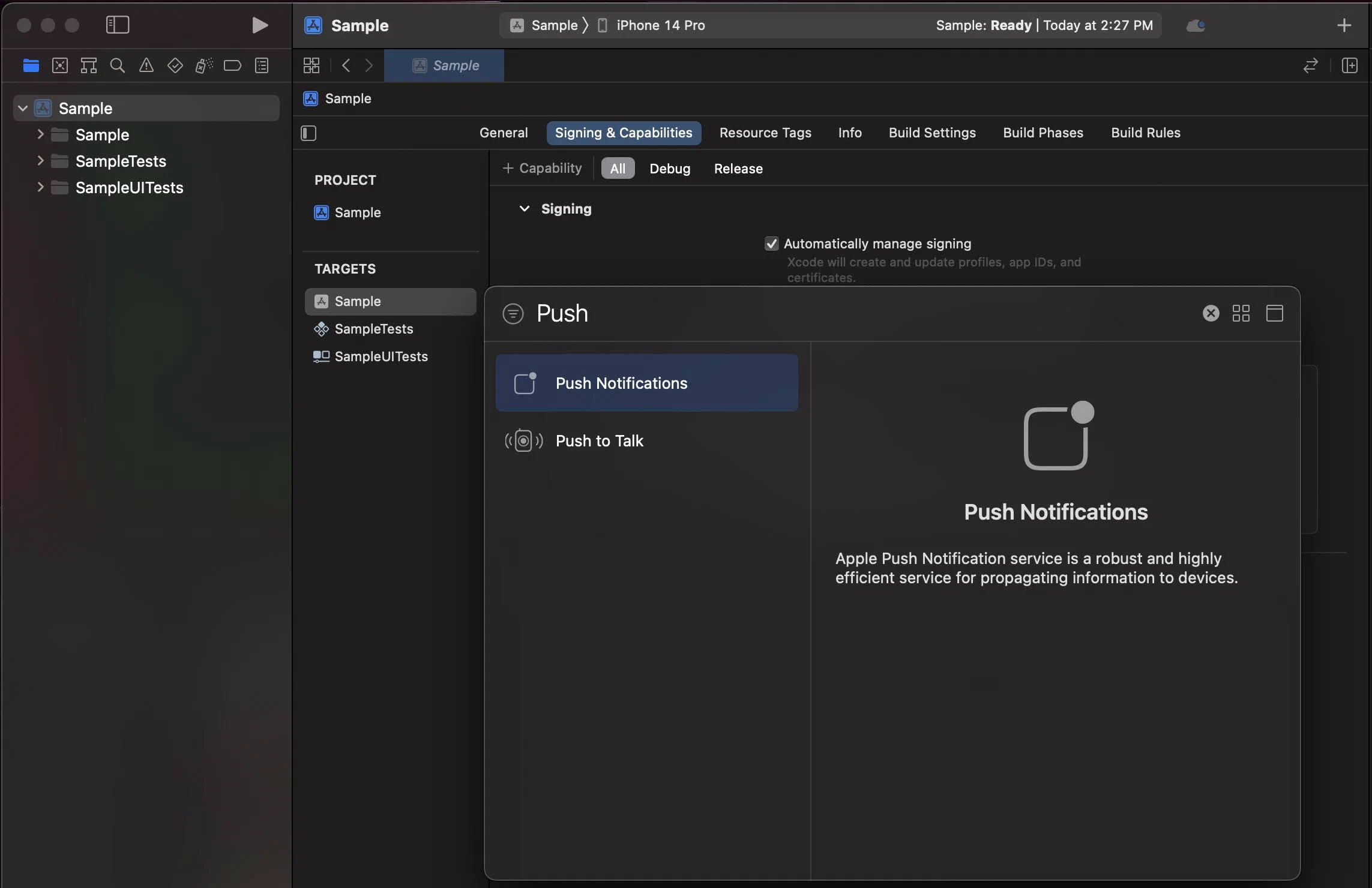 Enable Push Notifications Capability