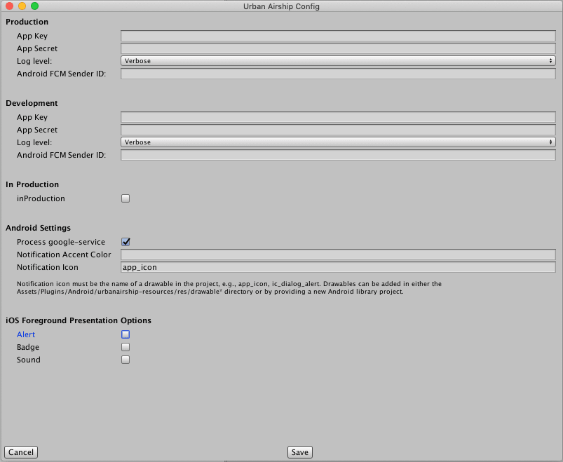 Leave the Android FCM Sender ID field BLANK for both Production and Development.