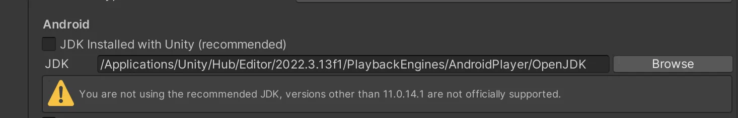 - For JDK, select Copy Path, uncheck JDK Installed with Unity (Recommended), then paste the path.