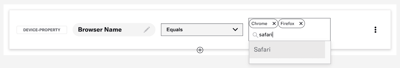 - Equals and Does not equal are the default operators for device properties. To make all operators available: