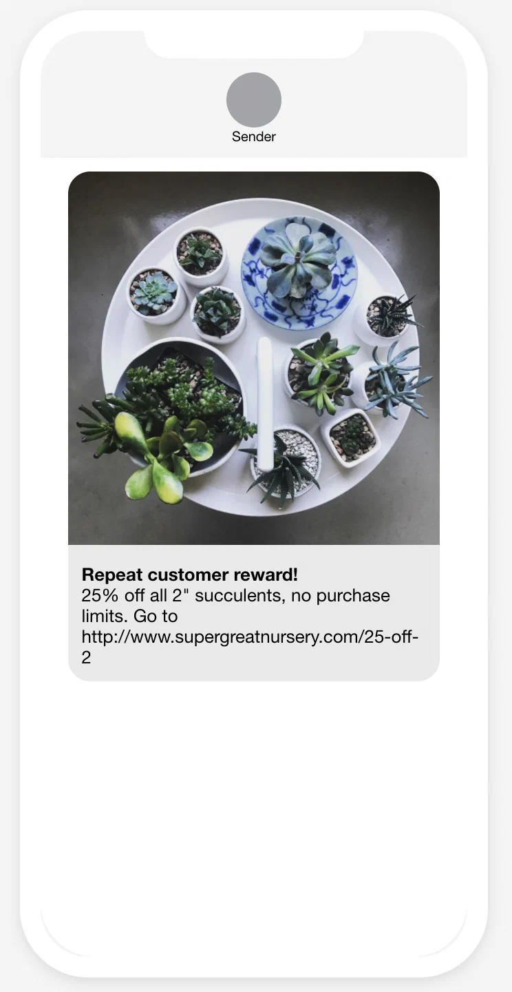 SMS messages are text-based. MMS (multi-media messaging service) is an extension of SMS, and MMS messages are image-based. MMS messages can include fallback text, ensuring that users who can’t view the original MMS message still receive a message that makes sense. Generally speaking, “SMS” is inclusive of MMS. Benefits include: