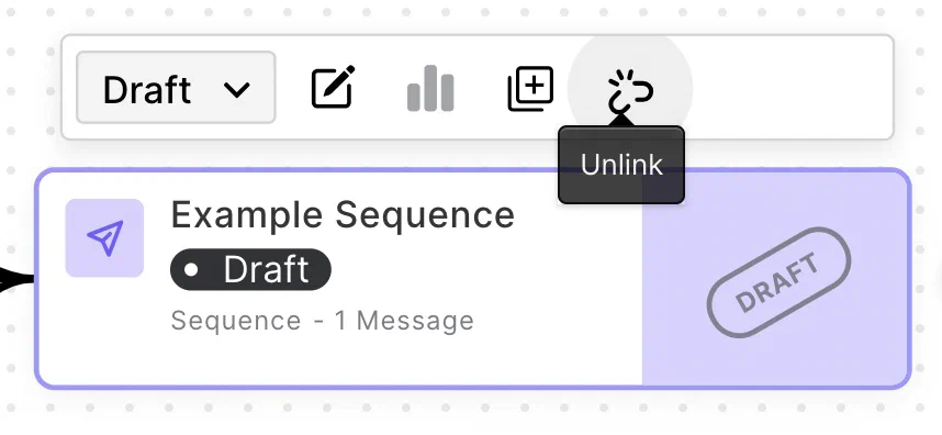 Unlinking an In-App Automation or Scene disconnects it from all upstream Sequences. When unlinking a Sequence, you can view all its upstream components and select which ones to unlink from. Anything downstream of the unlinked component will remain unchanged. After unlinking, the map reloads to focus on the unlinked component.