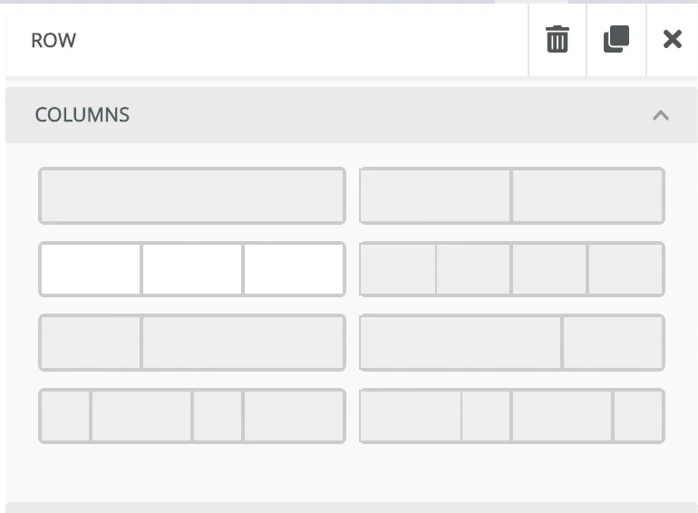 Select the add icon ( ) to add another column to a row or the delete icon () to remove.