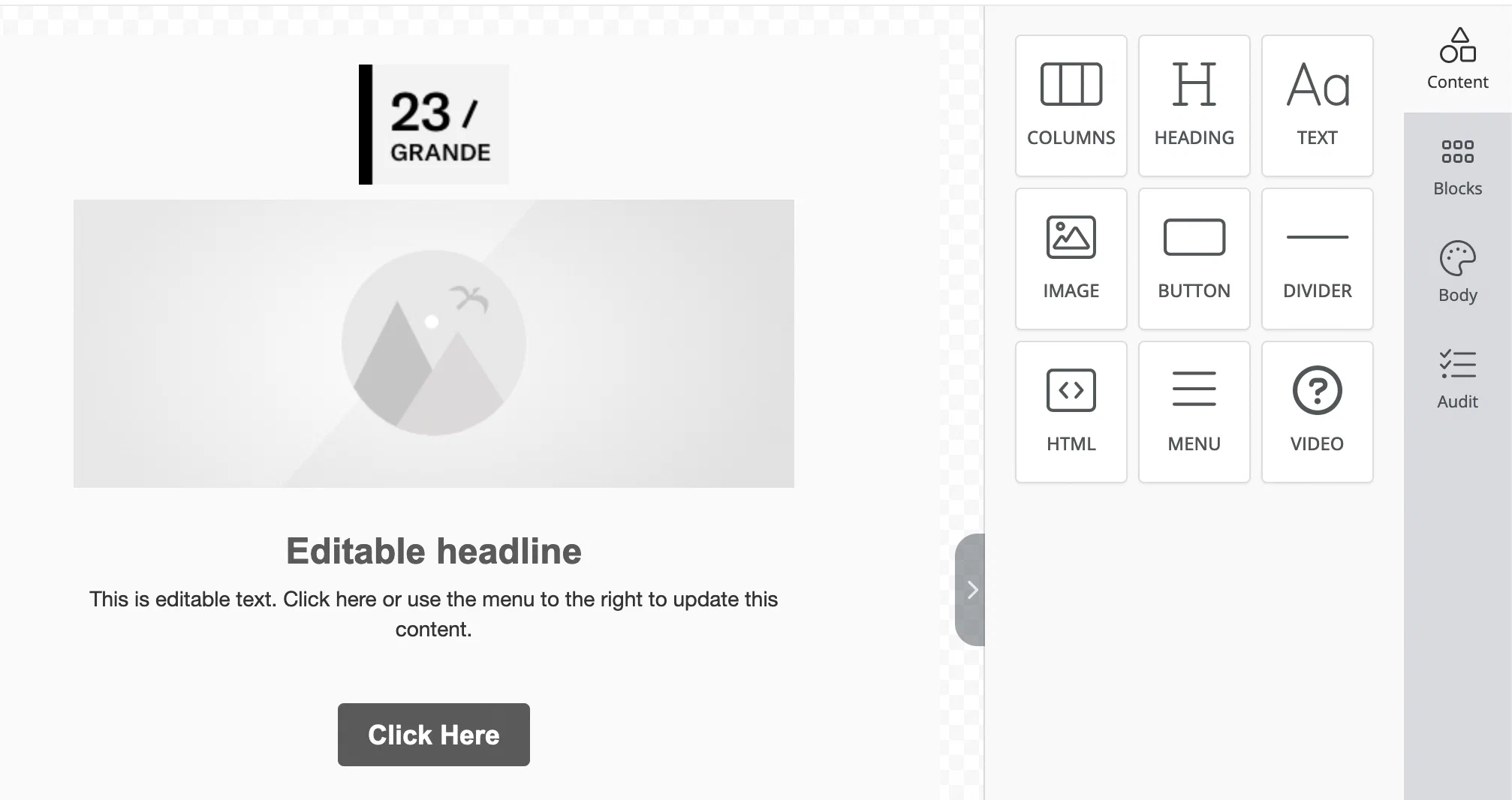 Use blocks or content columns to lay out your message before you add content. You can add multiple content elements to a single column. For example, you can place text above an image, and both items will be grouped together in the collapsed mobile view.