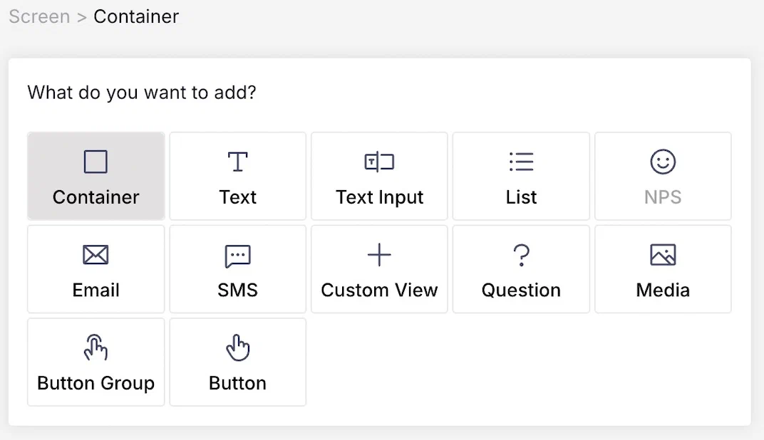 | Background color and opacity | The color and transparency level of the button, container, NPS scale, or input field background. | Select a Color SetA named pair of hexadecimal color values supporting device Light and Dark modes. Color sets can be selected for any color field in a scene and when configuring the default appearance of Scenes and In-App Automations. Dark mode is supported for Scenes only. or enter a hexadecimal color value, and then set the opacity percentage. |