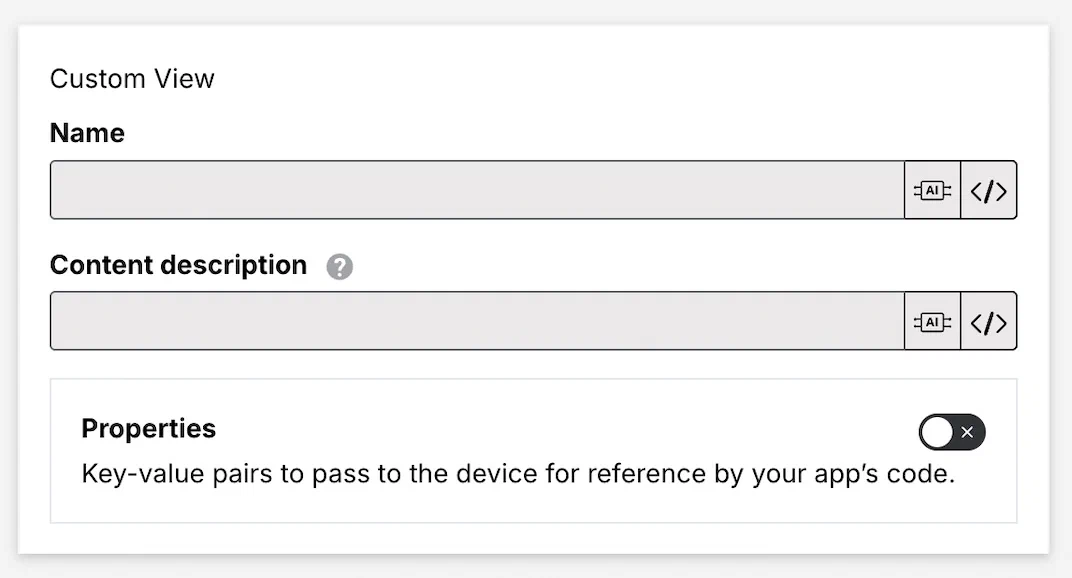 | Accessibility heading level | Optional, for Text only. The heading level of the text, for navigation using assistive technology such as screen readers. iOS SDK 18.13+Android SDK 18.5+ | Select from H1 to H6. |