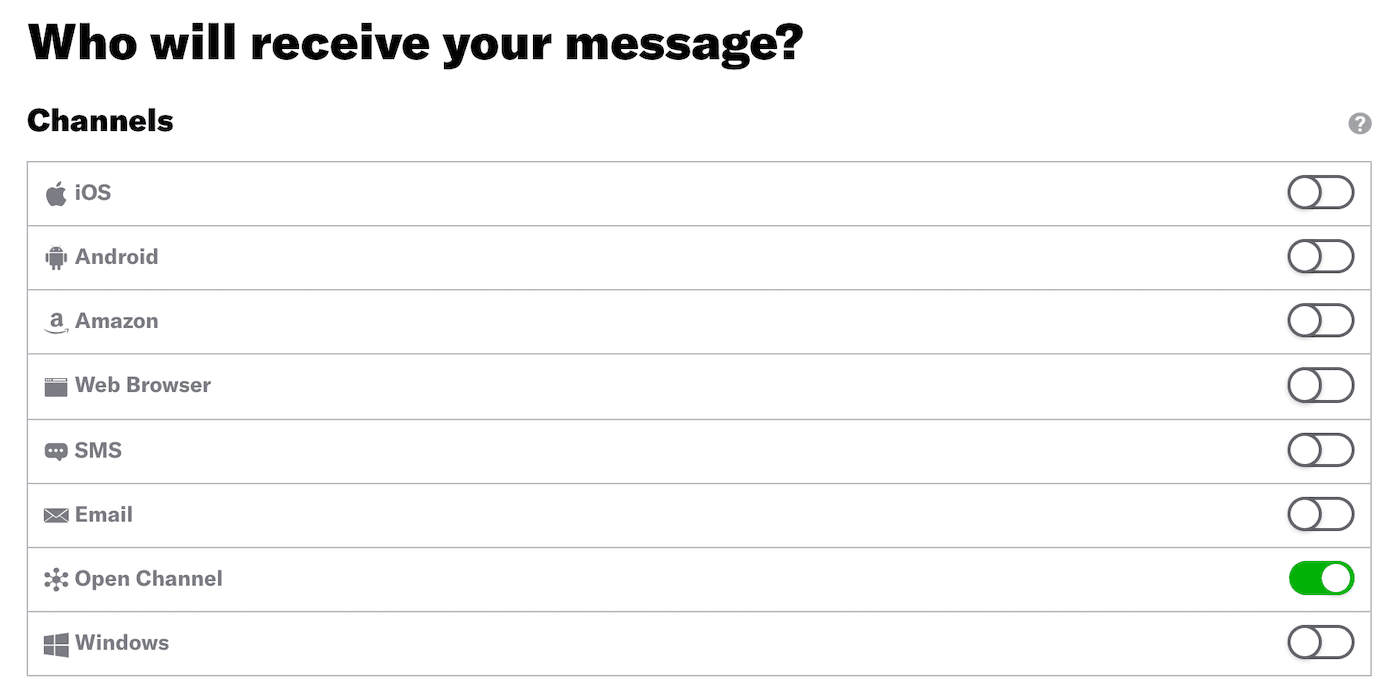 Enable the channels you want to send the message to, then choose a group of users.