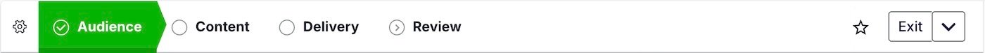 To get started, select the Create dropdown menu (), then select Message. After completing a step, select the next one in the header to move on. Select the gear icon () to name the message or flag it as a test.