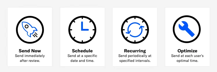 | Upload a list | Upload a list of users just before sending the message. This option is only available when you have one of Email, SMS, or an Open Channel enabled in Channel coordination. | See Bulk Sending. |