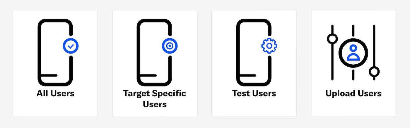 | Target Specific Users | Audience members in a group you define | Use the same process as when building a SegmentA reusable audience group you create by selecting unique or shared user data.. |