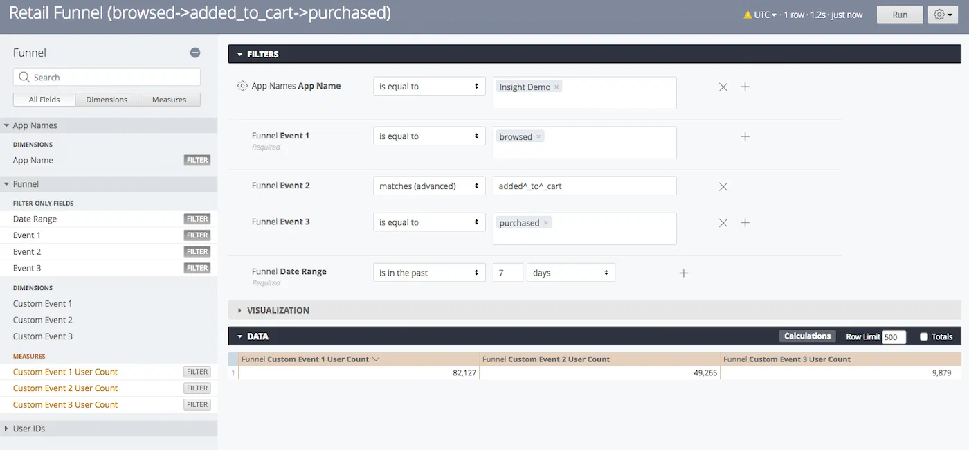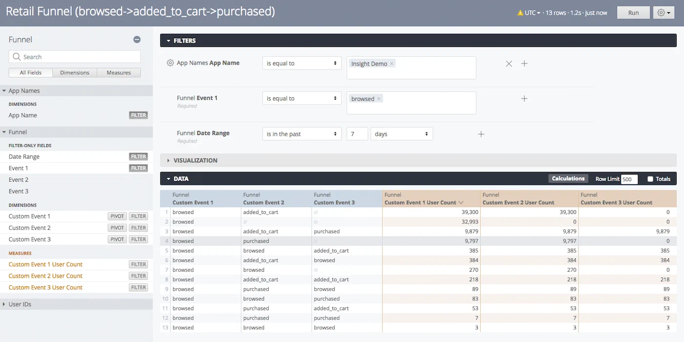 This tutorial expands on templated funnels to show how you can create your own funnel and path reports. These reports are powerful tools for analyzing the behaviors of your users. Funnel and path are available for Custom EventsEvents that indicate that a user performed a predefined action, such as adding an item to a shopping cart, viewing a screen, or clicking an Unsubscribe button. Custom Events can trigger automation, including Sequences and Scenes. You can code them into your app or website, or send them to Airship from an external source using the Custom Event API. Custom Events contain properties that you can use to personalize messages..