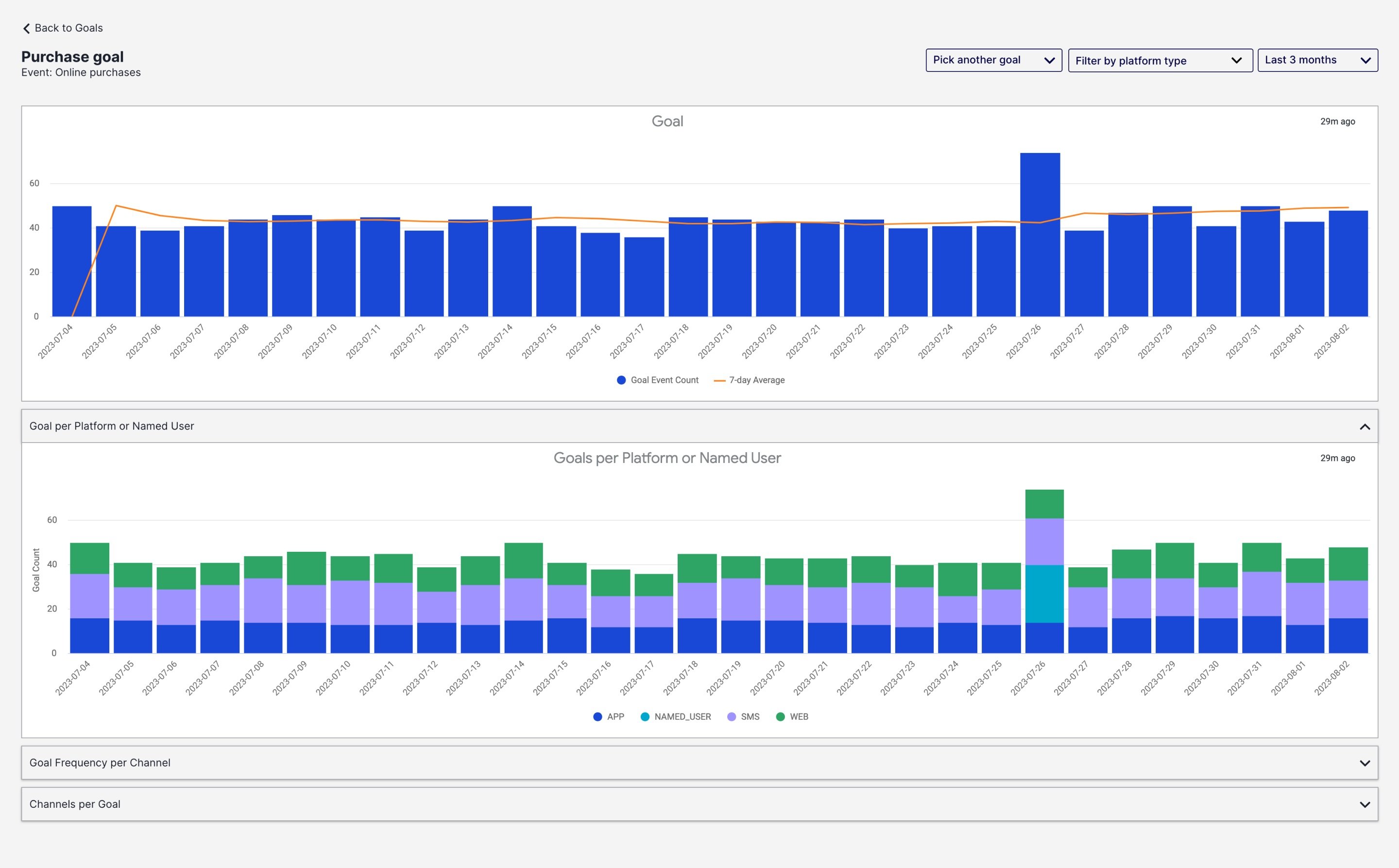 Use Goals to measure campaign and program success and understand how your messaging impacts business goals. See also: