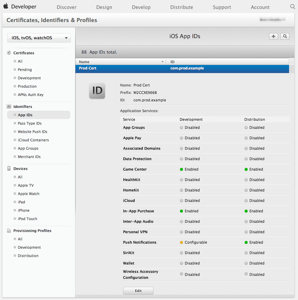 - Log in to your Apple Developer account, then go to Certificates, Identifiers & Profiles » App IDs.