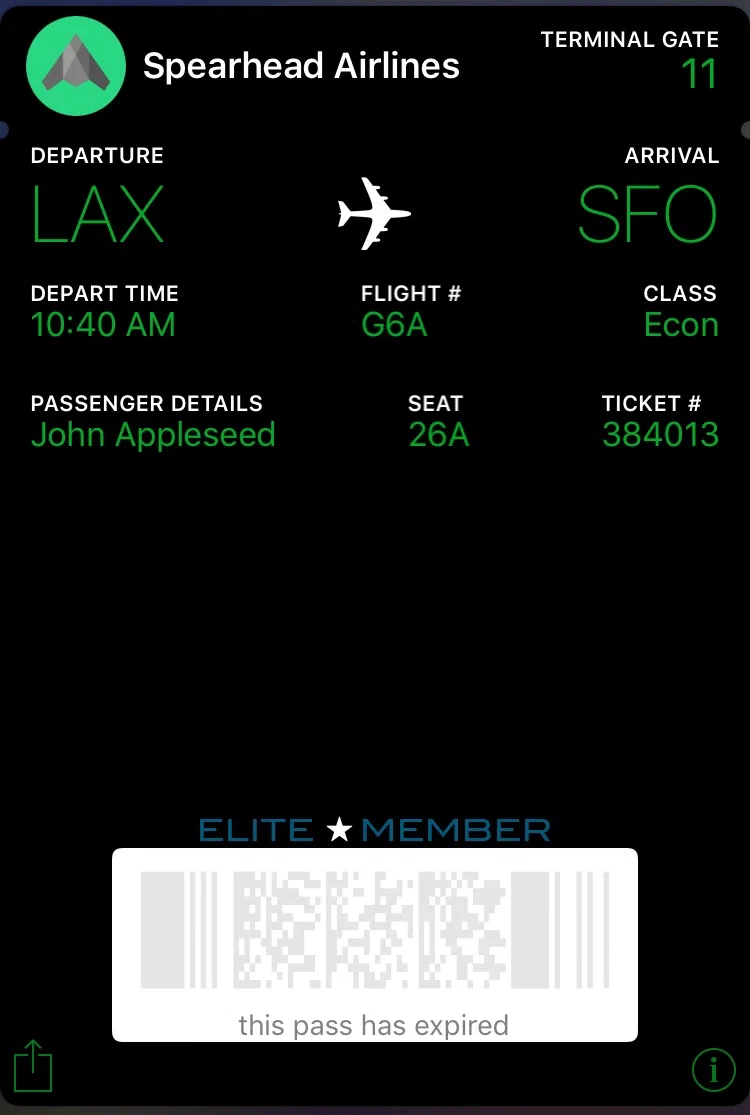 Revoke a pass or prevent the accumulation of stale passes in your end users’ wallets by controlling when it expires.