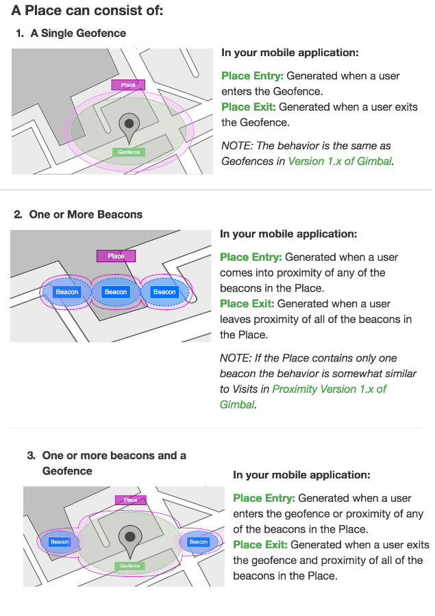 - The Gimbal system refers to your app’s locations as Places. A Place is