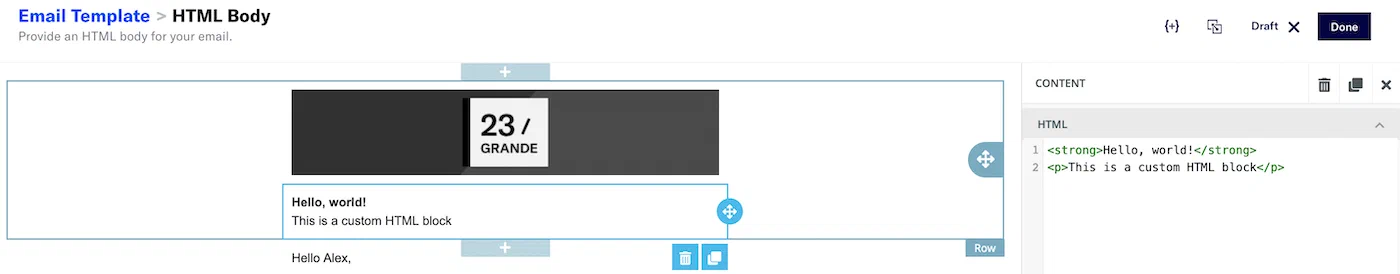 - Click Add for HTML Body.