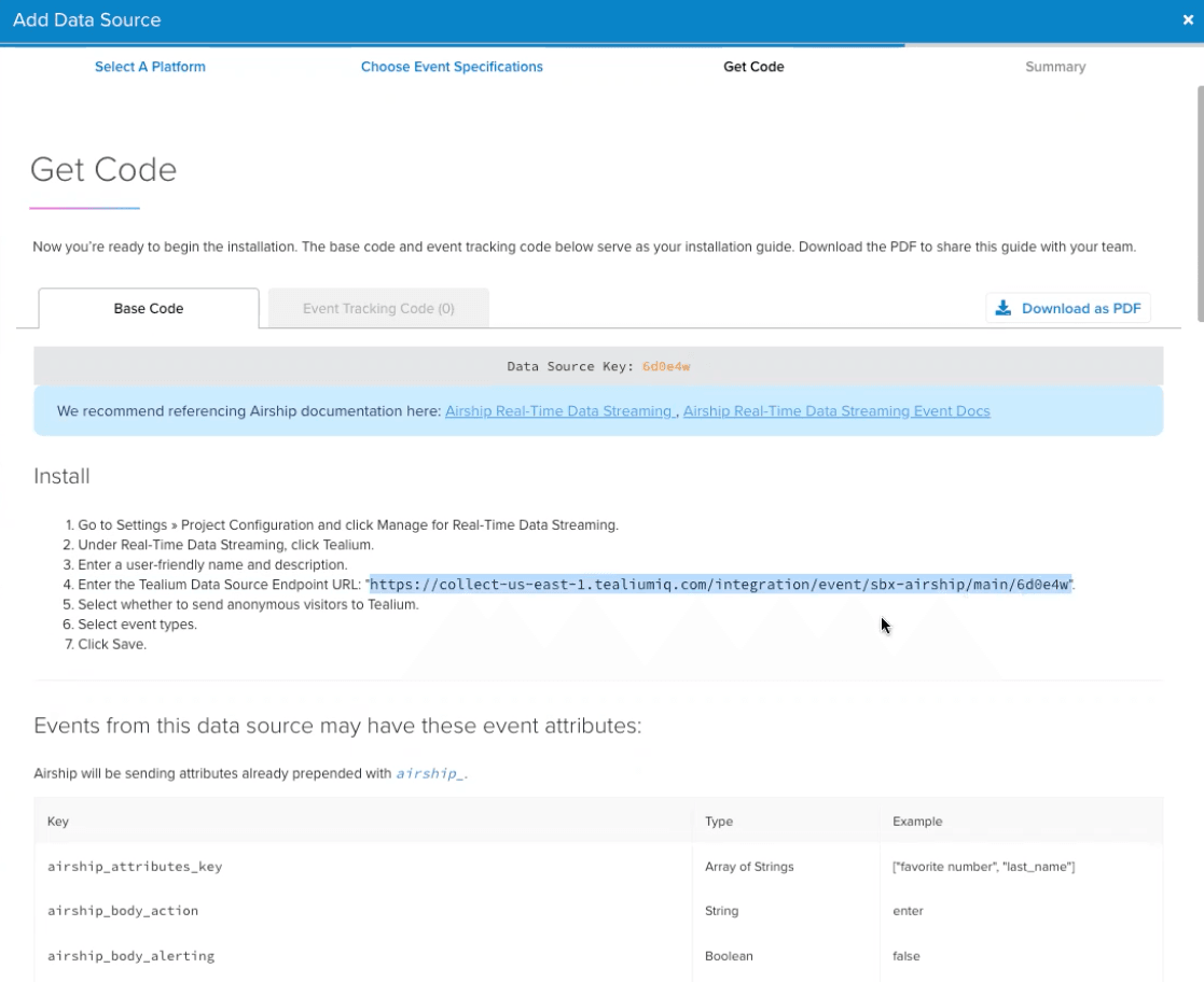 tealium_visitor_idon Airship events. See the Kotlin and iOS setup sections below for more information. - Add Airship to Tealium as a source and retrieve your Data Source Endpoint.