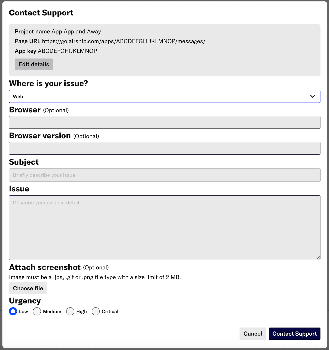 New features make it easier to report issues to Airship Support.