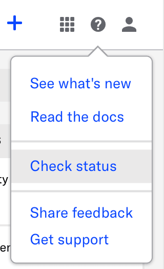 The status page can be found at https://status.airship.com for the US and https://status.airship.eu for the EU. Each page has a link to the other. From the dashboard, you can access the Status page by clicking and selecting Check status.