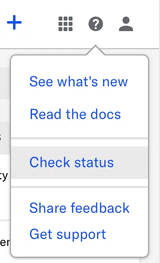 The status page can be found at https://status.airship.com for the US and https://status.airship.eu for the EU. Each page has a link to the other. From the dashboard, you can access the Status page by clicking and selecting Check status.